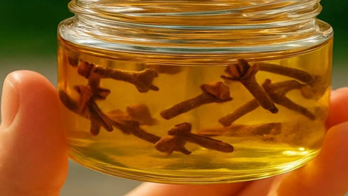 1️⃣ Klinček zalejte olejom a nechajte lúhovať 7 dní na tmavom mieste. Zmes občas pretrepte.