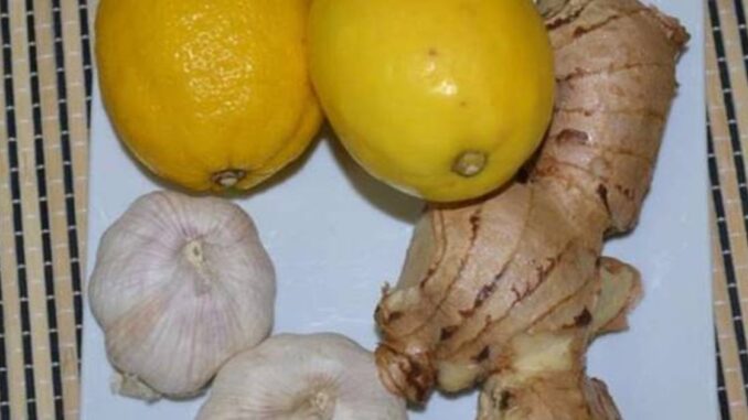 - Cesnak ošúpte a spolu s citrónmi a zázvorom vložte do hrnca.