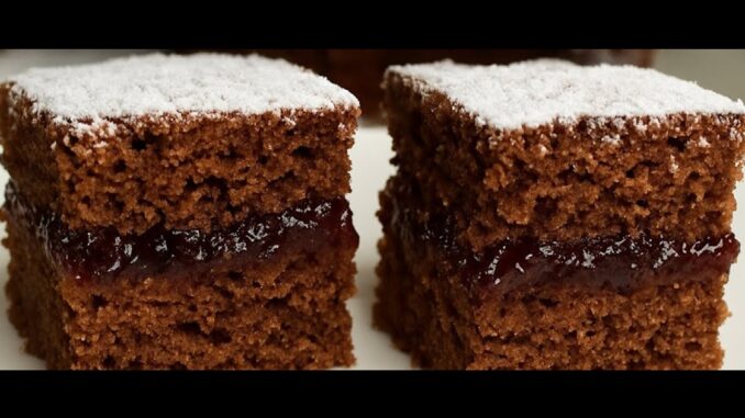 Najjemnejší koláč s džemom a kakaom, ktorý máte hotový doslova za pár minút! 😍 Bez mixéra, bez zbytočného riadu a výsledok sa rozplýva na jazyku. Ideálny, keď dostanete chuť na sladké alebo príde nečakaná návšteva.